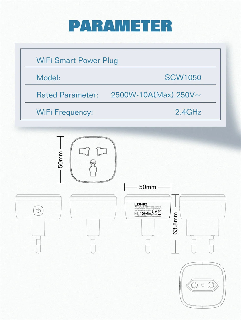Note: The European plug has a diameter of 4.8MM, which is suitable for sockets in most EU countries, but not for 4.0MM sockets (for example, Italy, Spain, Switzerland, Netherlands, Türkiye, Chile, Brazil)