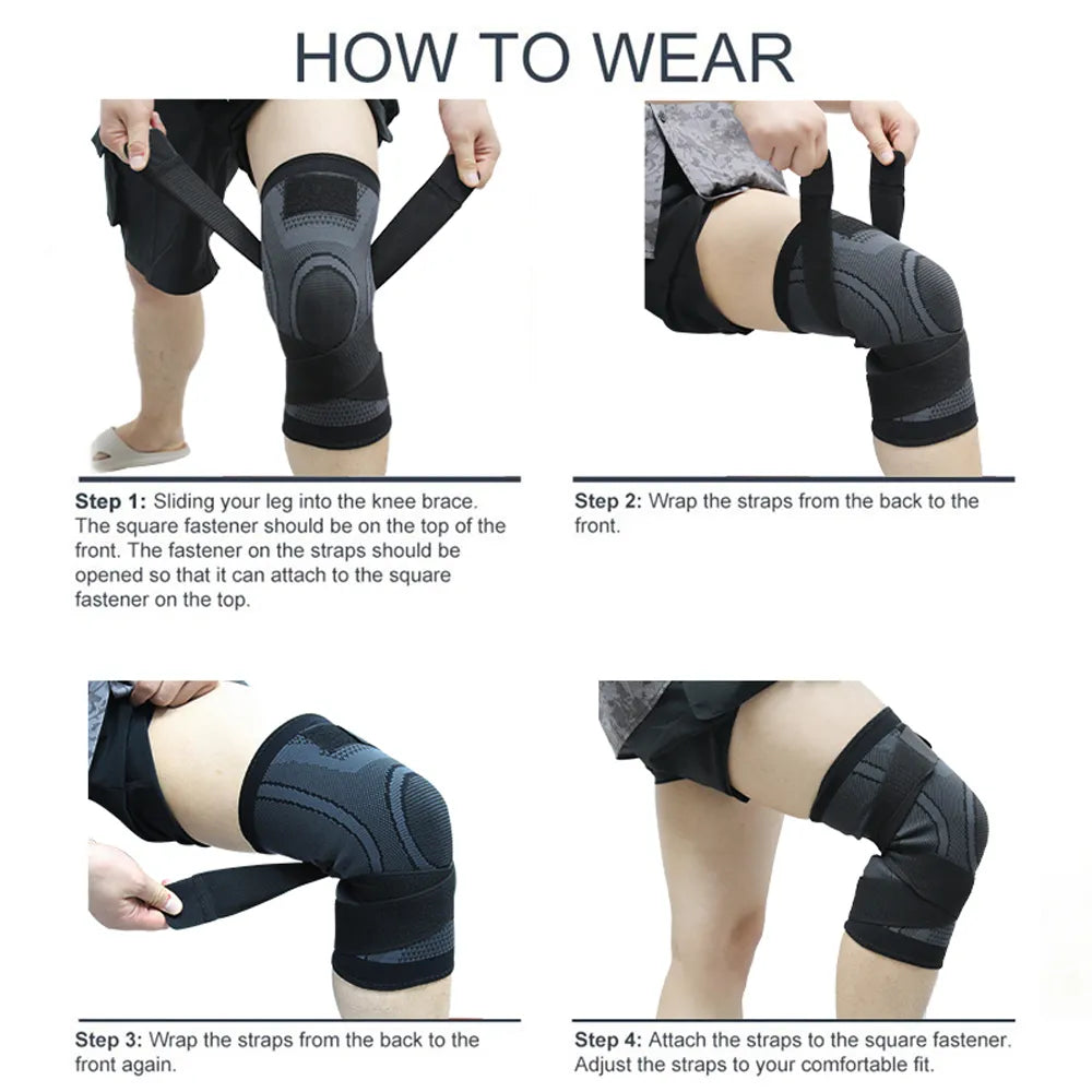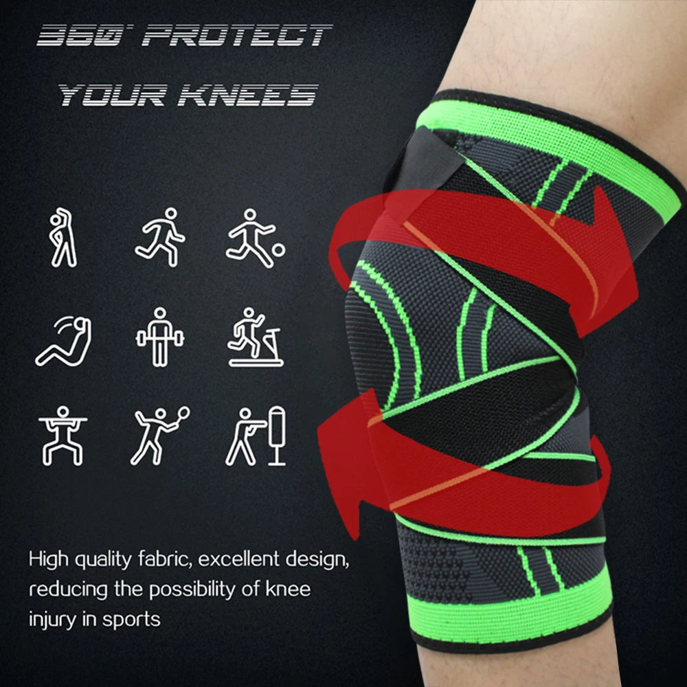 "Men Pressurized Elastic Kneepad Support Bandage": These knee pads are designed with a pressurized and elastic material, providing a snug and supportive fit around the knee area. The elastic nature of the material allows for flexibility and comfort while maintaining pressure to support the knee joint during movement.