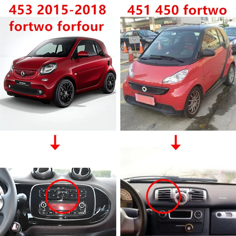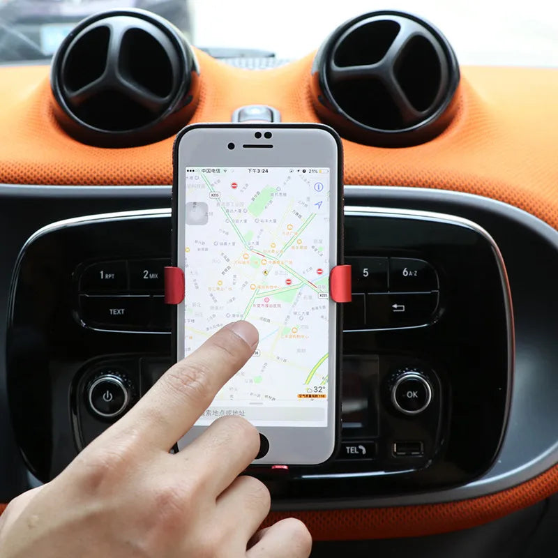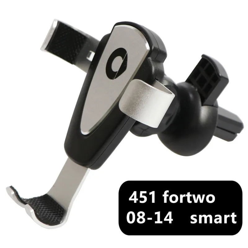 451/450 Car Air Conditioning Air Outlet Mobile Phone Bracket: This is a mobile phone bracket or holder designed to attach to the air conditioning air outlet in Smart car models 451 and 450. It's specifically engineered to fit onto the air vents of these particular models, providing a stable and easily accessible location for mounting your mobile phone within the car. By utilizing the air conditioning air outlet, this bracket ensures that your phone remains within sight and reach without obstructing your view of the road or interfering with other dashboard controls. It's a convenient solution for safely using your phone's features while driving.