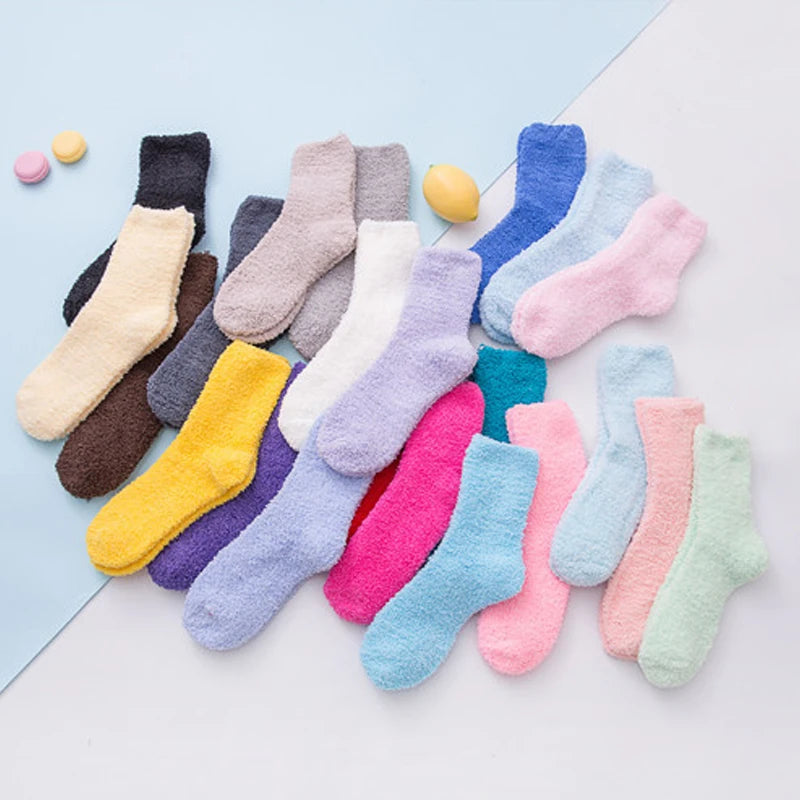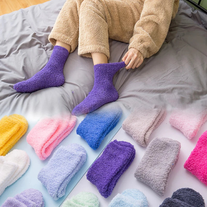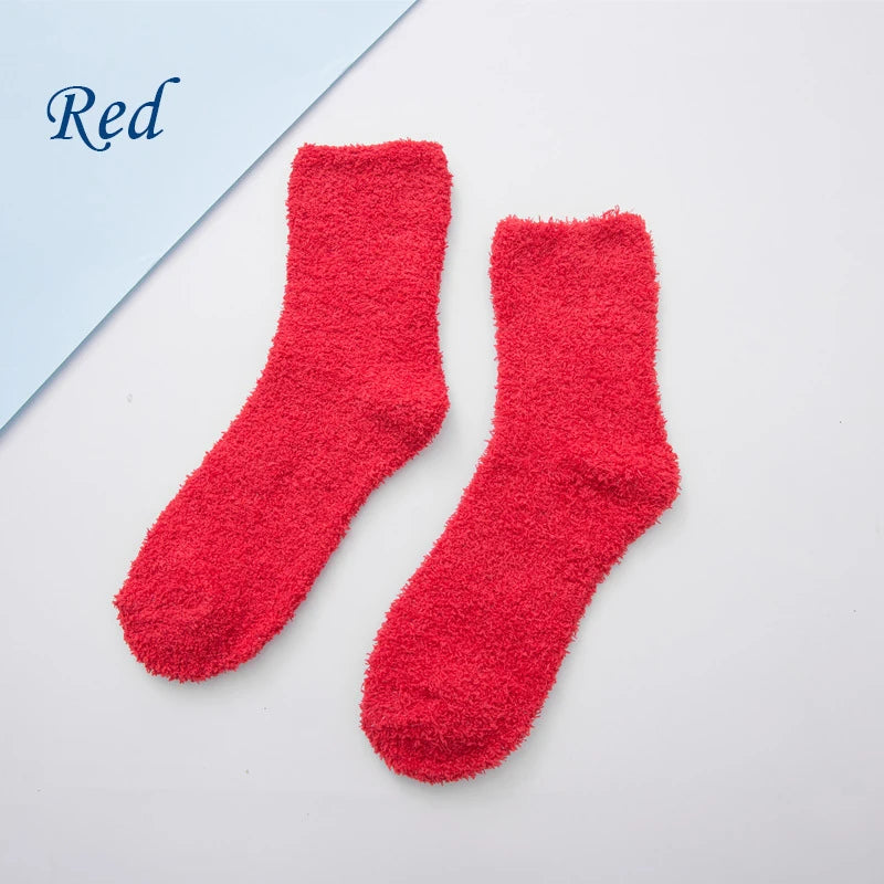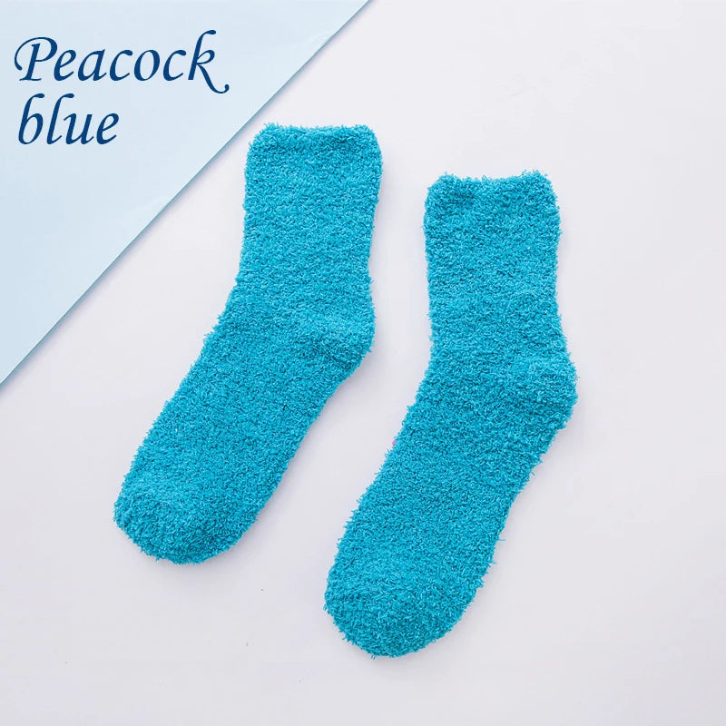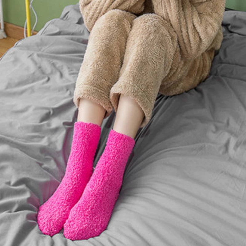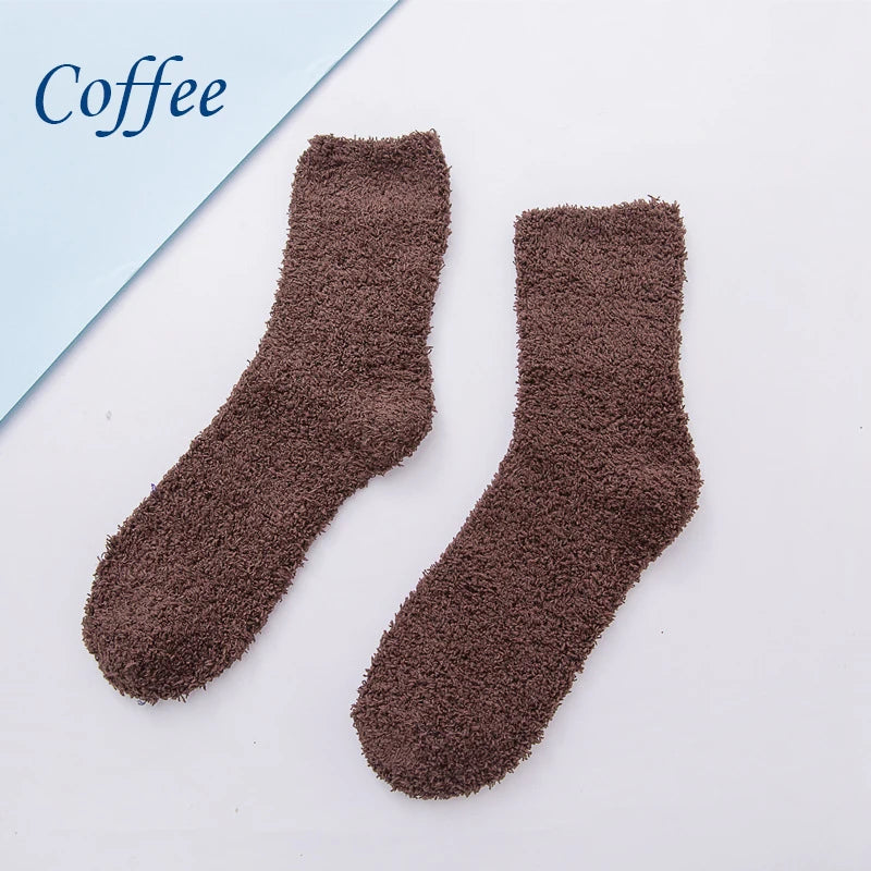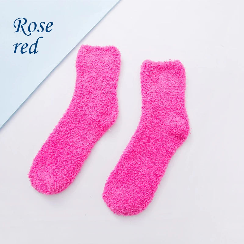 SocksFluffy Coral Velvet: These socks are specially designed for women, featuring a fluffy texture made from coral velvet material.